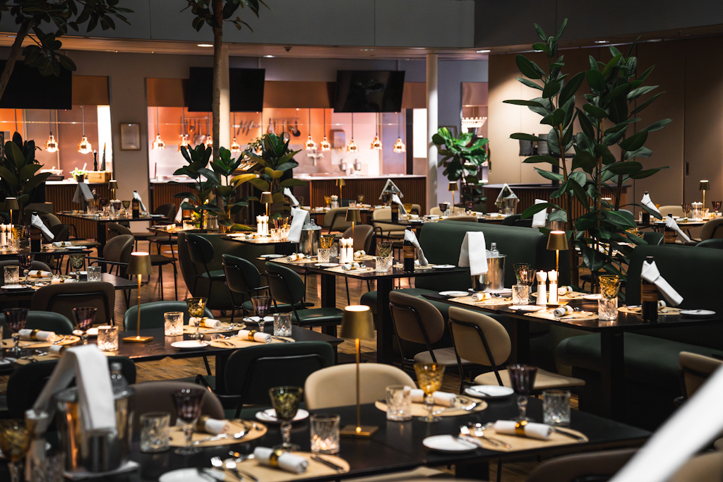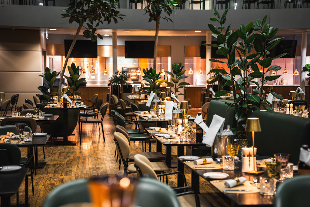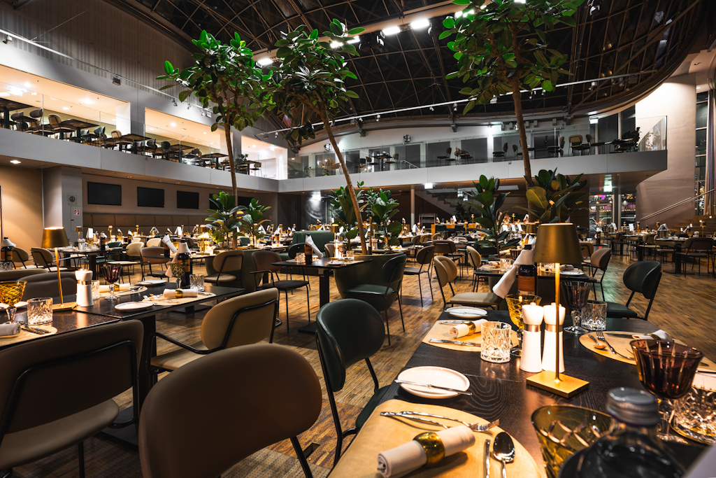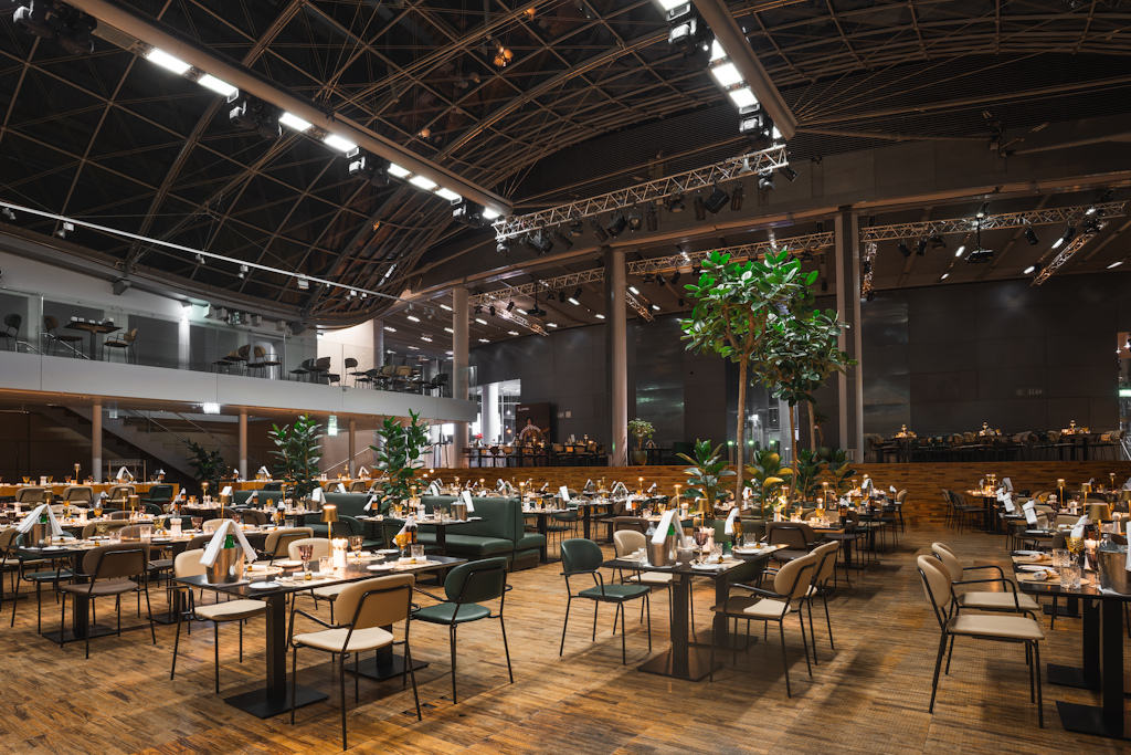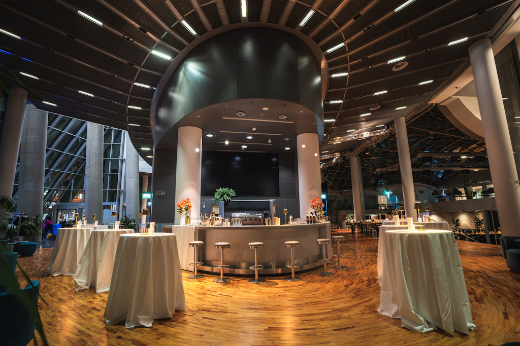 das Atrium (500 m²) gesetzt bis 350 Personen, stehend bis 450 Personen